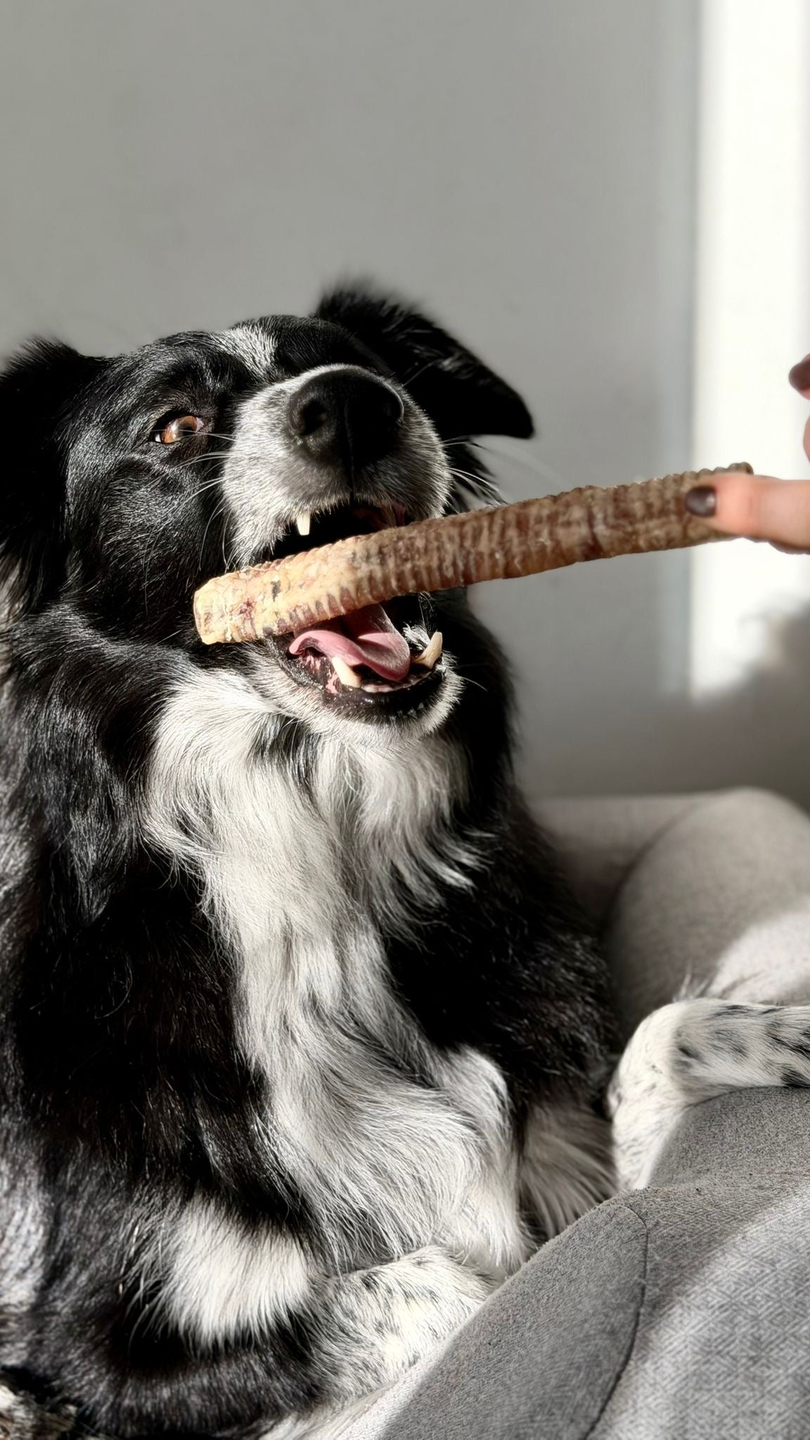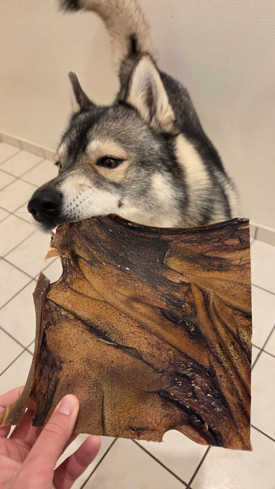 Les matières premières utilisées proviennent d’animaux élevés pour la consommation humaine. Les parties utilisées pour les friandises sont des co-produits de cette filière. Autrement dit, aucun animal n’est abattu spécifiquement pour la fabrication de friandises pour chiens.