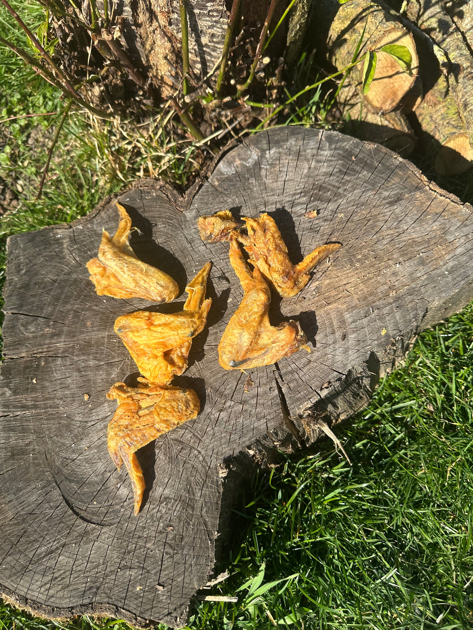 Nos ailes de poulet séchées pour chiens sont une collation naturelle pour les repas intermédiaires et, en raison de leur teneur élevée en protéines et de leur teneur moyenne en matières grasses, conviennent également comme complément sain à l'alimentation principale.