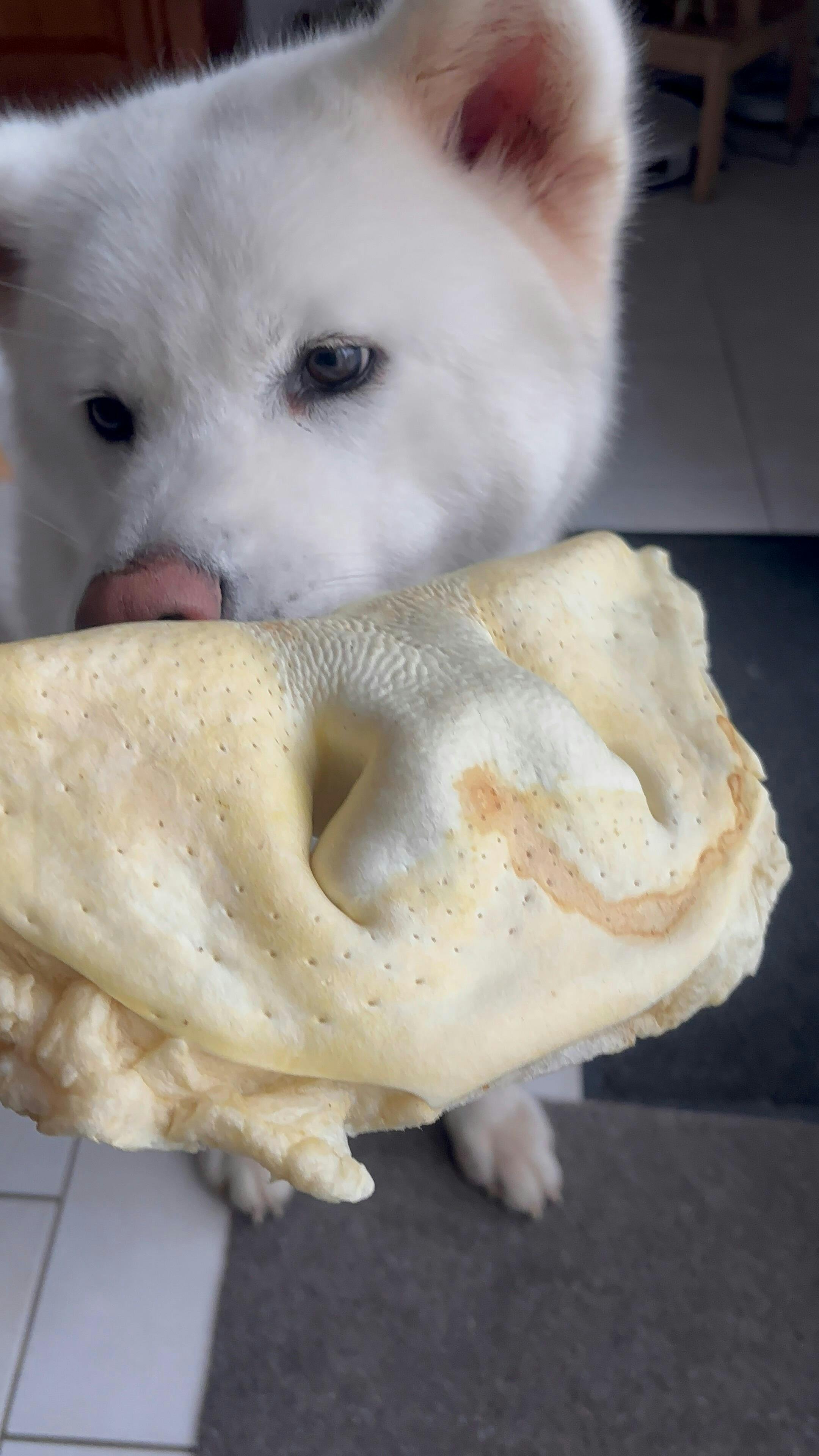 Pour les petits chiens, il est possible de couper le museau en morceaux plus petits.